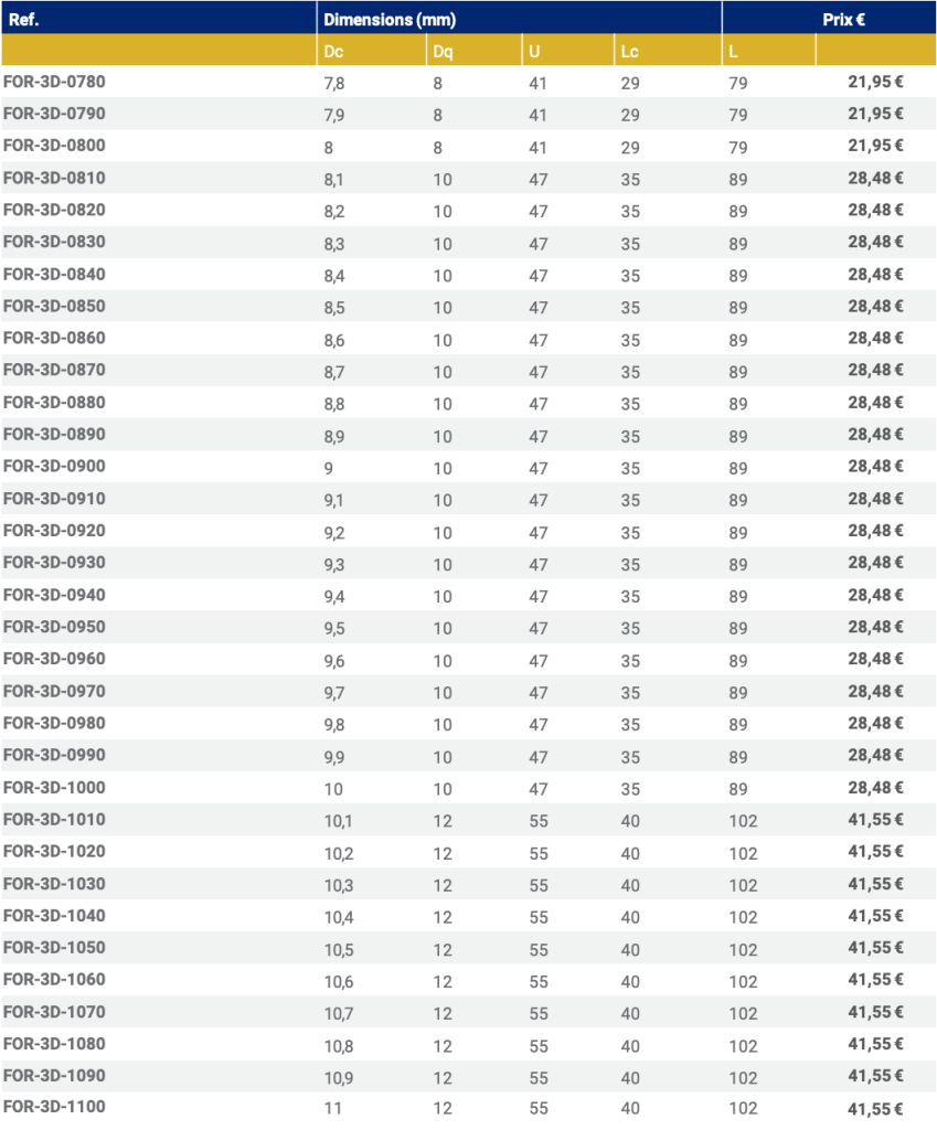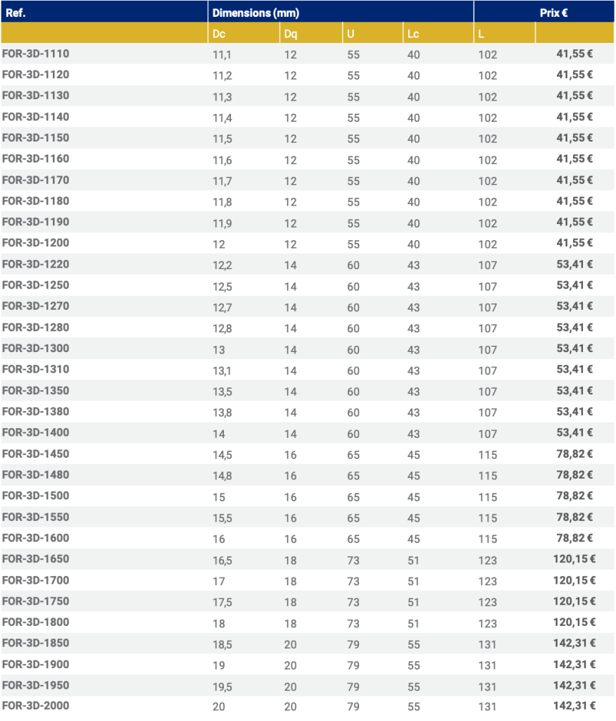 3XD FORET EN CARBURE MONOBLOC DIN6537K – Série normale
