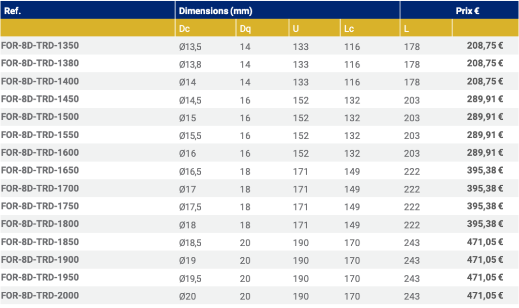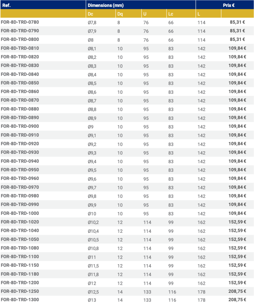 - Forets carbure monobloc