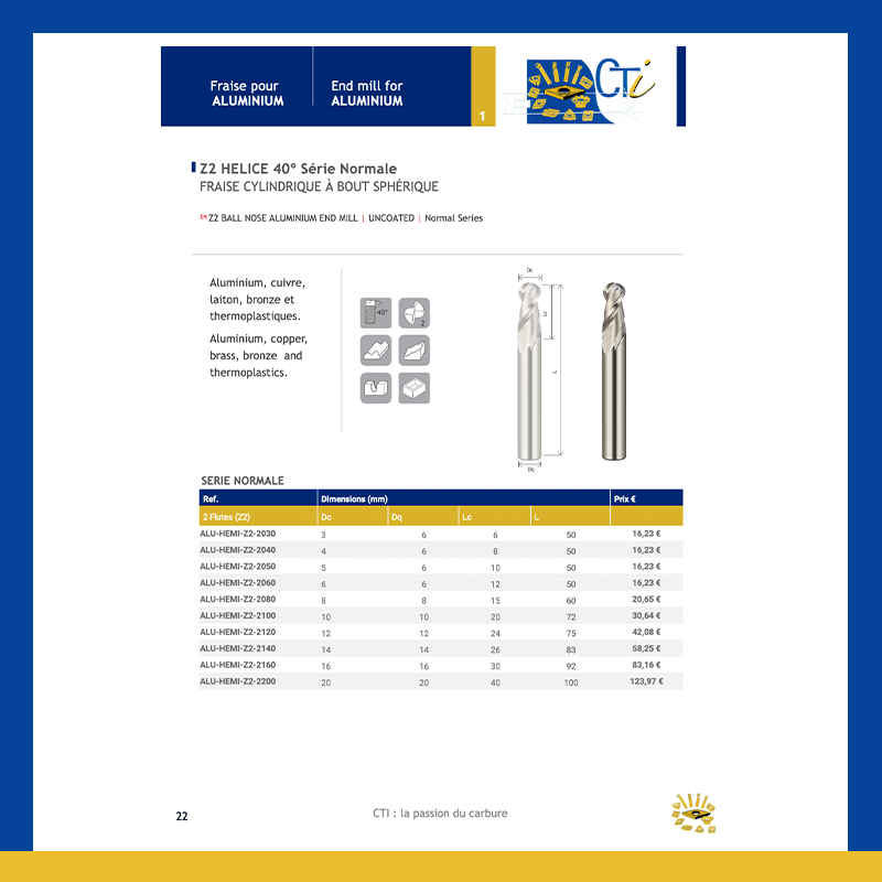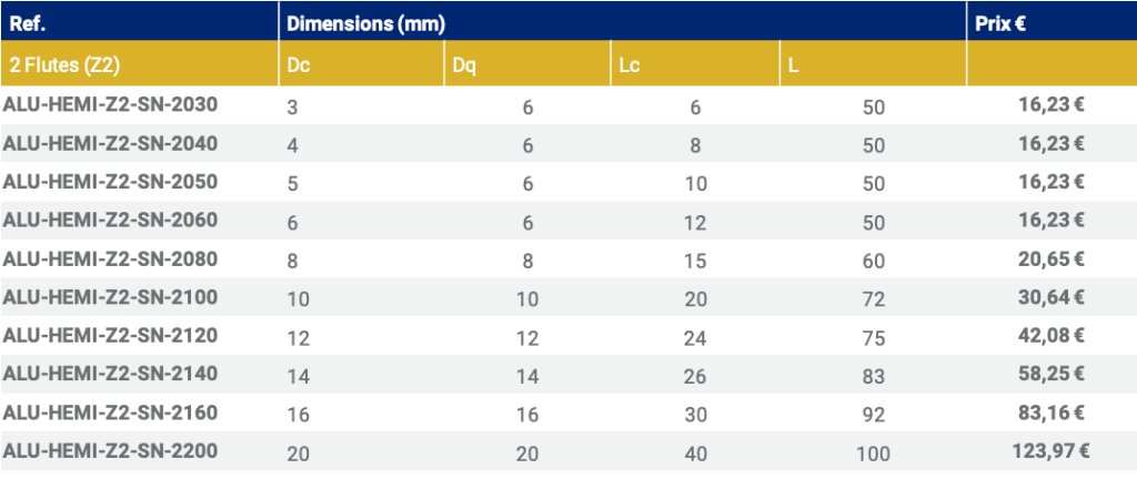 - Fraise pour aluminum