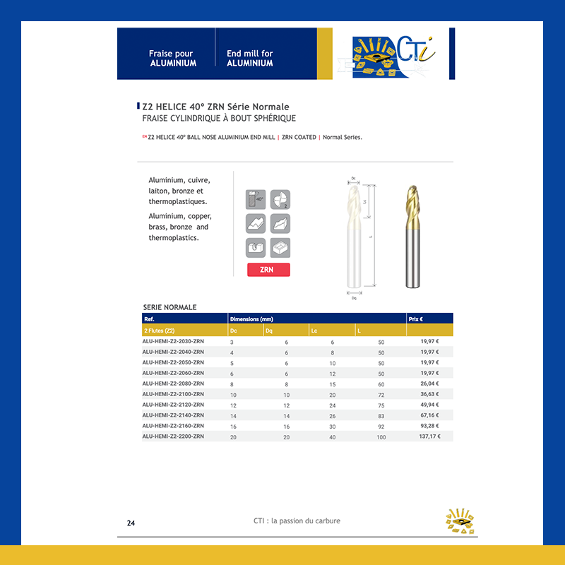 Z3 FRAISE TORIQUE À BOUT SPHÉRIQUE – HELICE 45º Série ZRN Longue