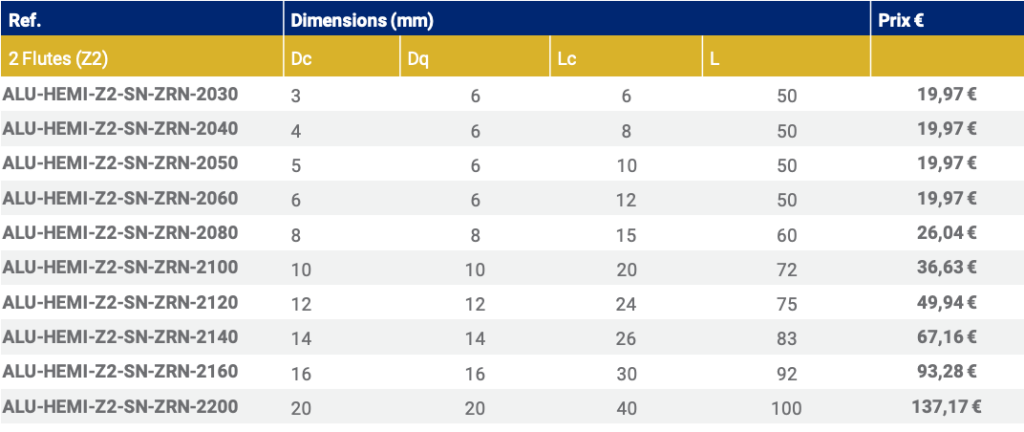 - Fraise pour aluminum
