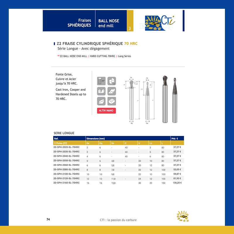 Z2 FRAISE CYLINDRIQUE SPHÉRIQUE – Série Longue