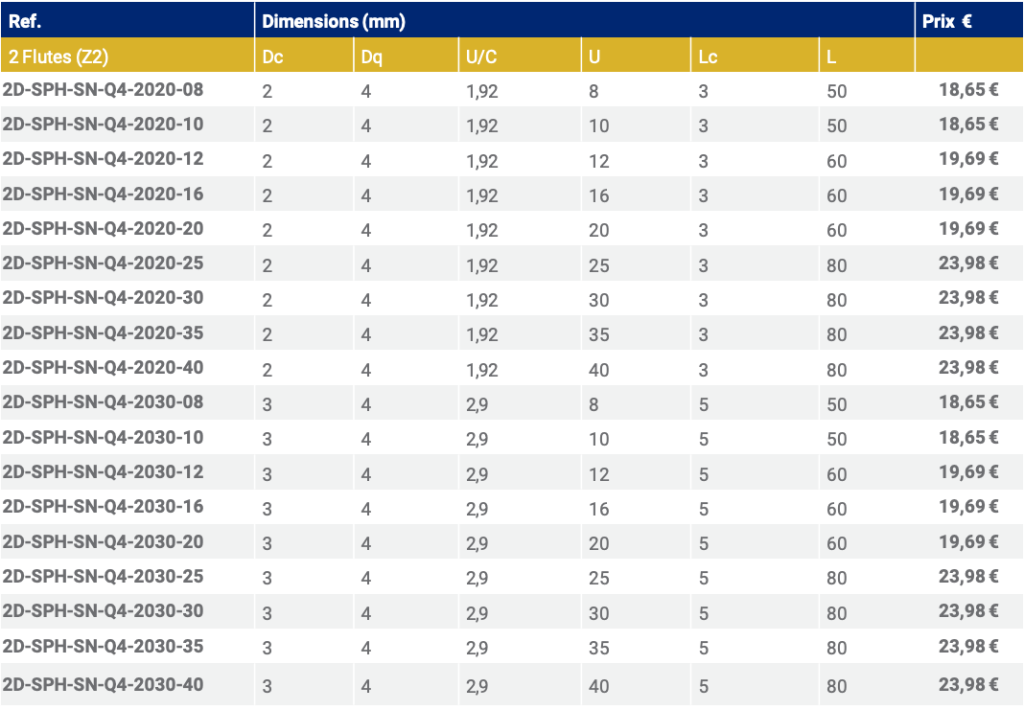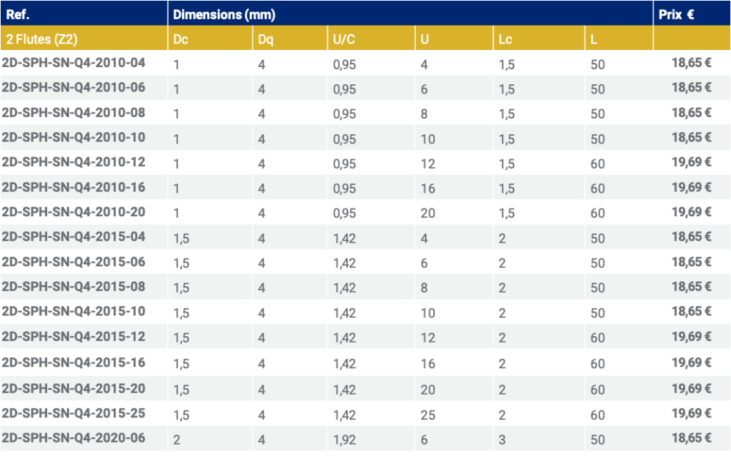 Z2 FRAISE CYLINDRIQUE SPHÉRIQUE 70HRC – Série Normale