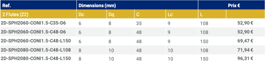 Z2 FRAISE SPHÉRIQUE À CONICITÉ 1,5º – Queue de 6