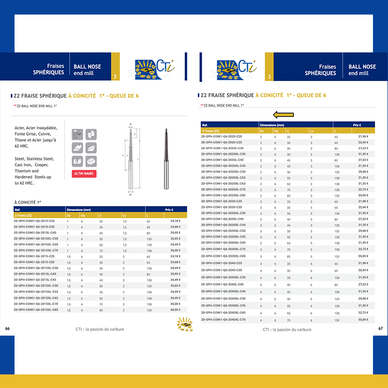 Z2 FRAISE CYLINDRIQUE SPHÉRIQUE – Série Longue