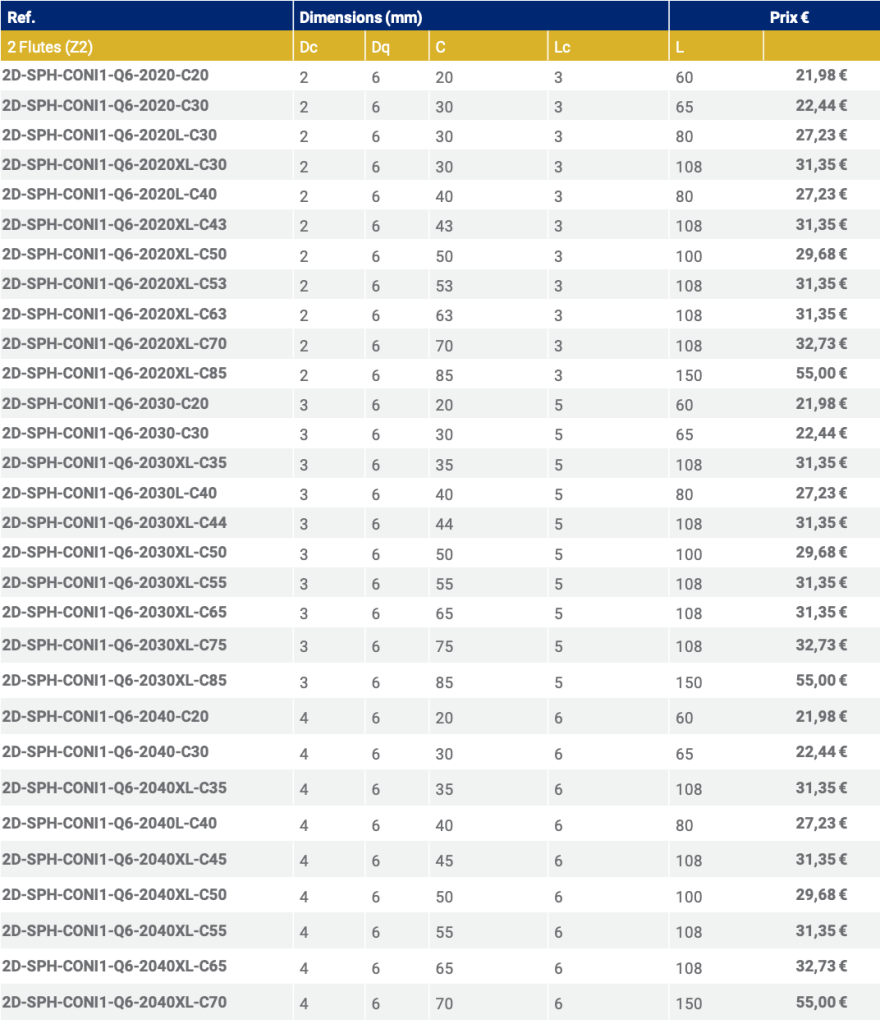 Z2 FRAISE CONIQUE SPHÉRIQUE