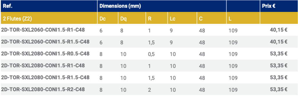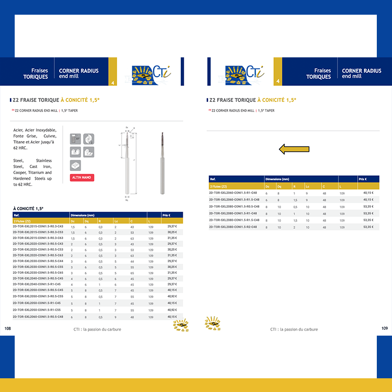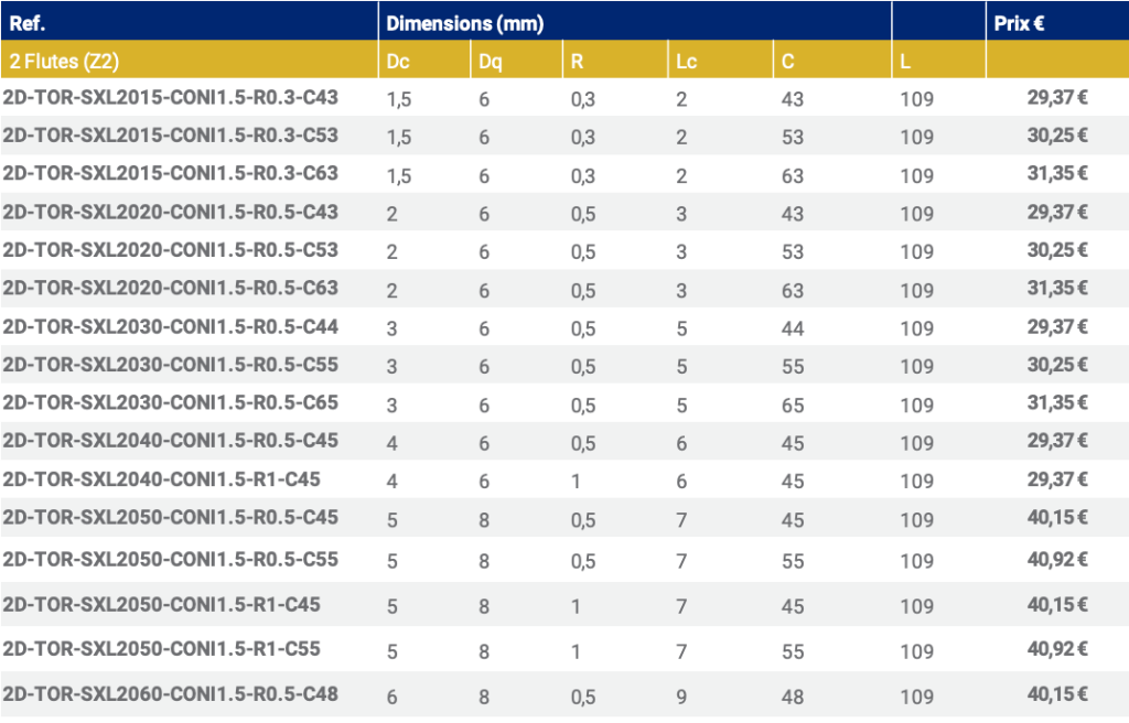 Z2 FRAISE TORIQUE À CONICITÉ 1º