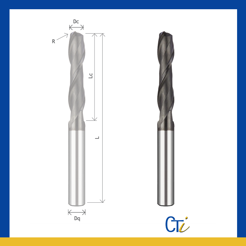 Z2 FRAISE CYLINDRIQUE À BOUT SPHÉRIQUE – HELICE 40º Série ZRN Longue