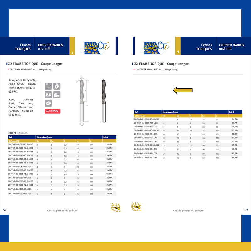 Z2 FRAISE TORIQUE À CONICITÉ 1,5º