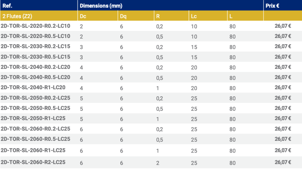 Z2 FRAISE TORIQUE – Queue de 6