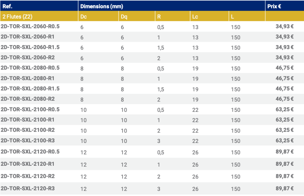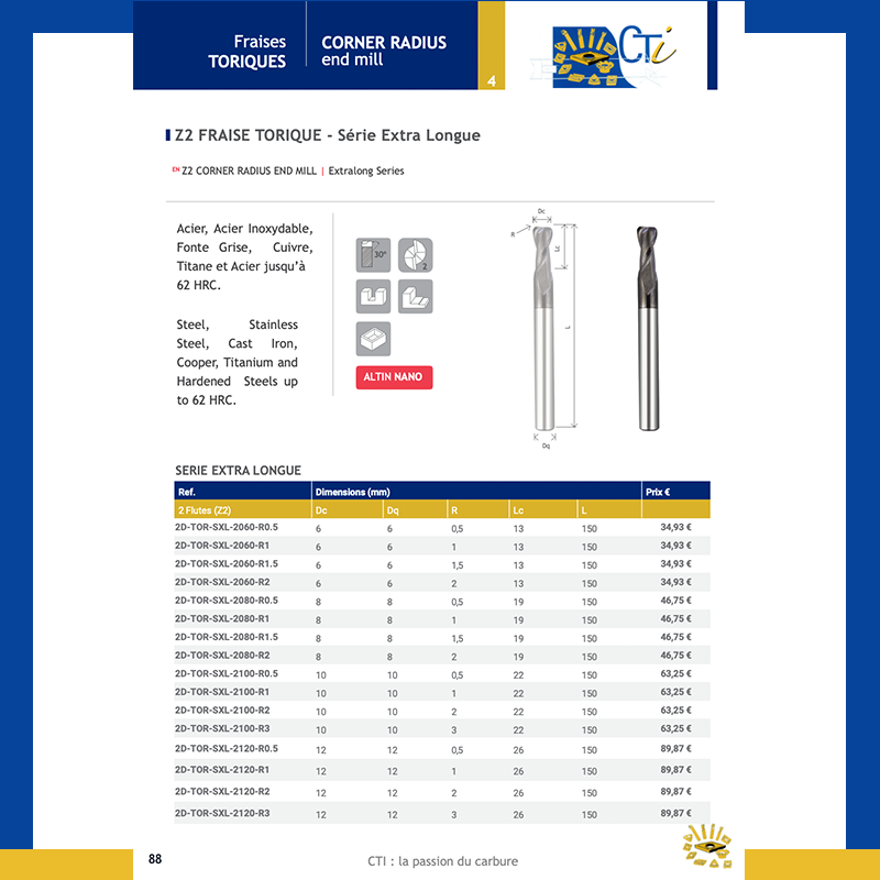 Z2 FRAISE TORIQUE 62 HRC – Série Longue