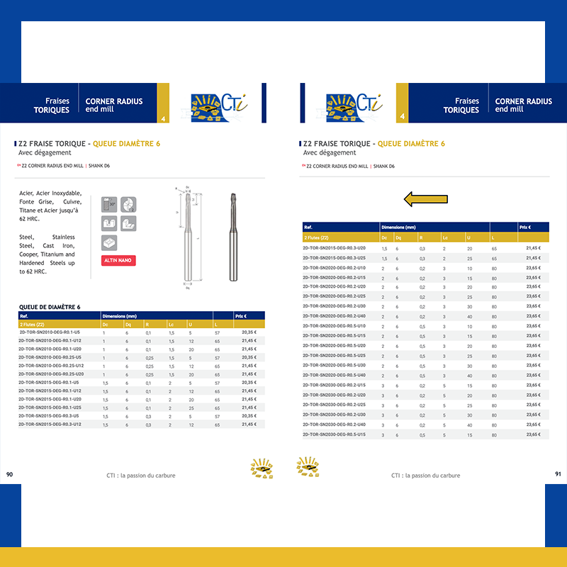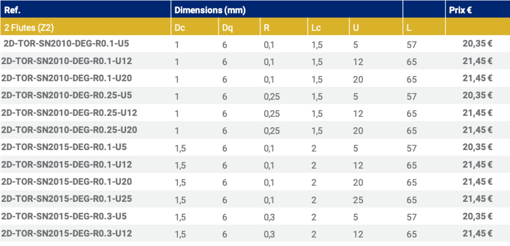 Z2 FRAISE TORIQUE 62 HRC – Série Longue