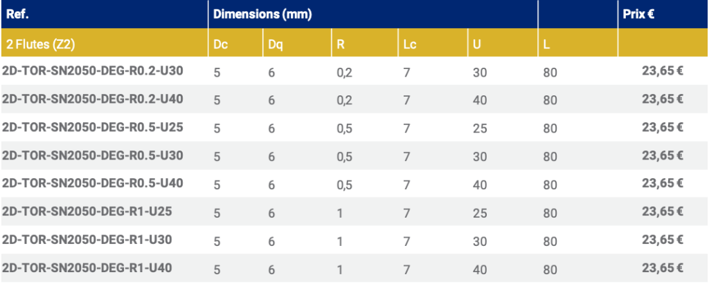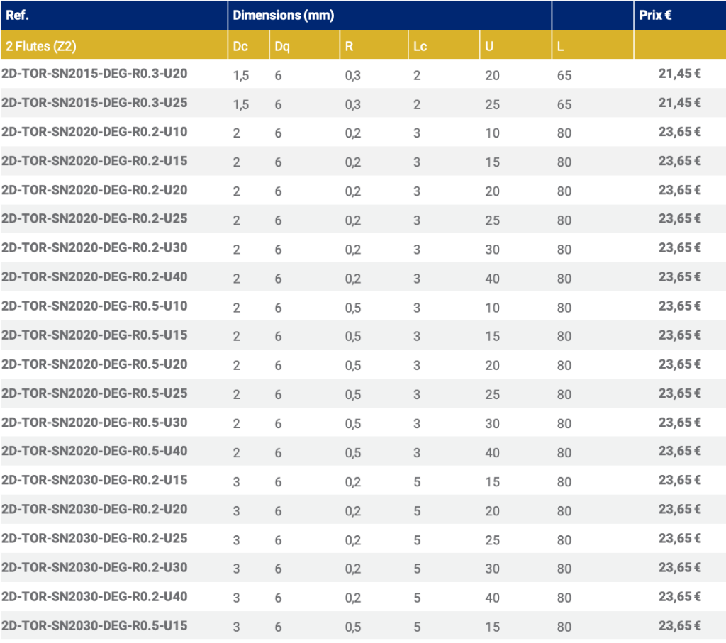 Z2 FRAISE TORIQUE À CONICITÉ 1º
