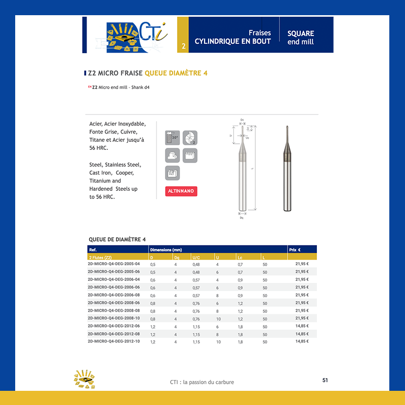 32,00 €Le prix initial était : 32,00 €.29,90 €Le prix actuel est : 29,90 €. KIT 1 – Z2 FRAISE CYLINDRIQUE EN BOUT 30° Série Normale