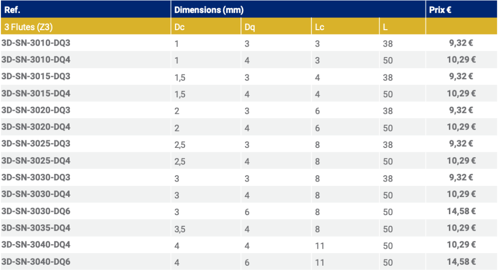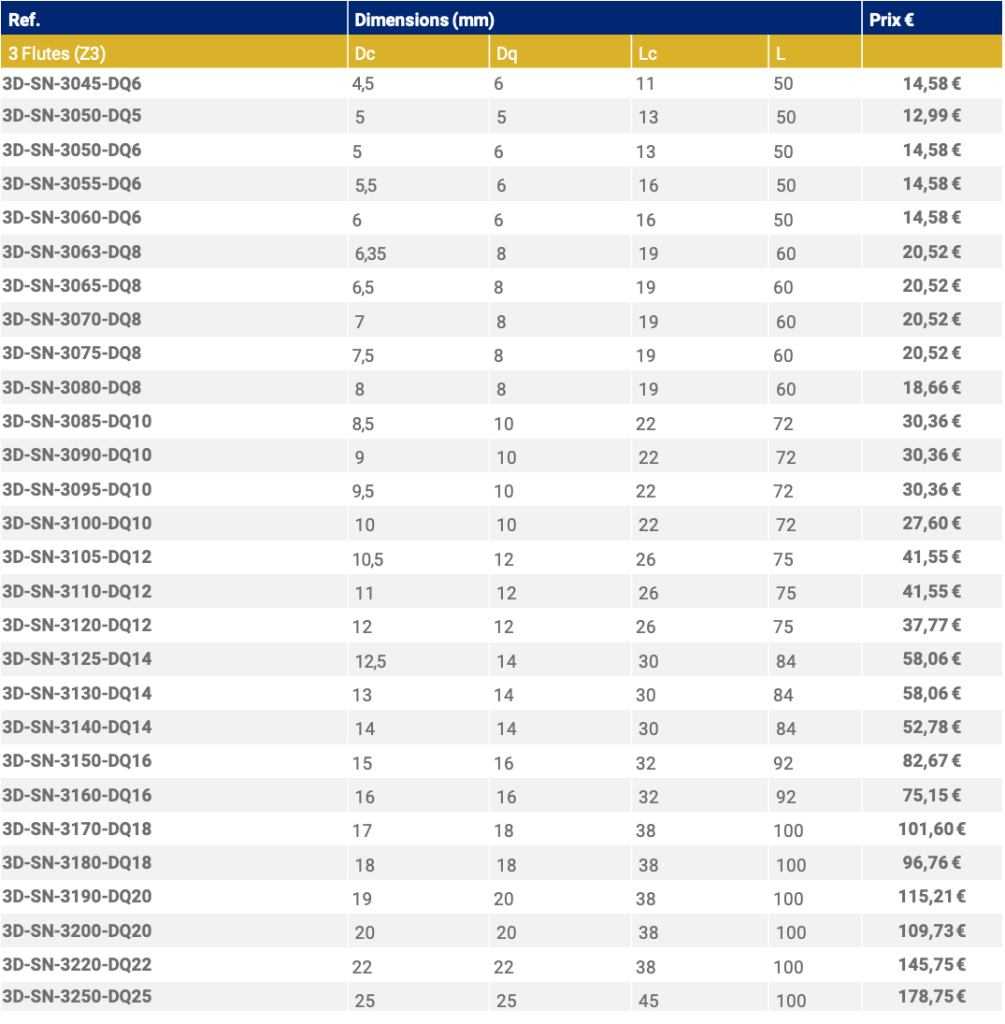 49,00 €Le prix initial était : 49,00 €.46,90 €Le prix actuel est : 46,90 €. KIT 2 – Z2 FRAISE CYLINDRIQUE EN BOUT 30° Série Normale