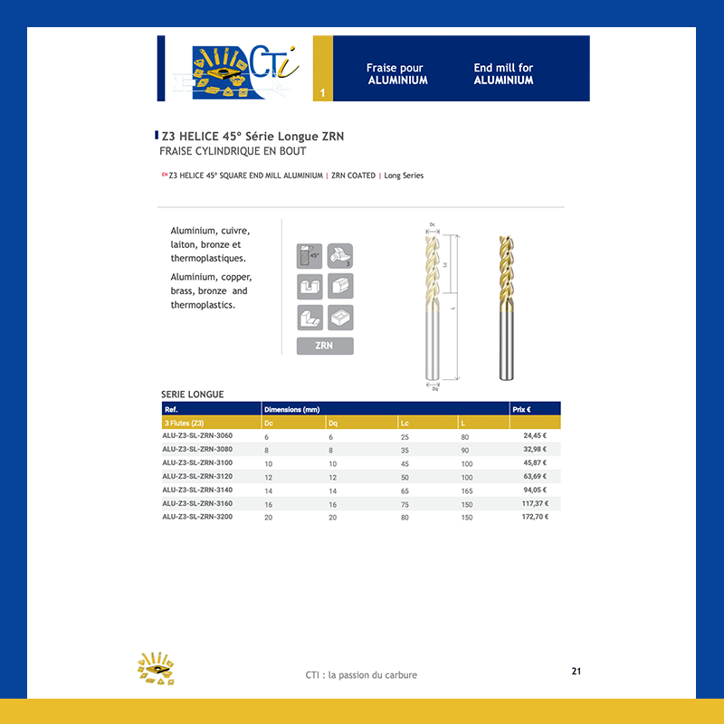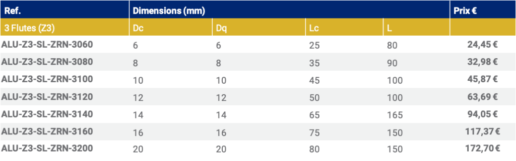- Fraise pour aluminum