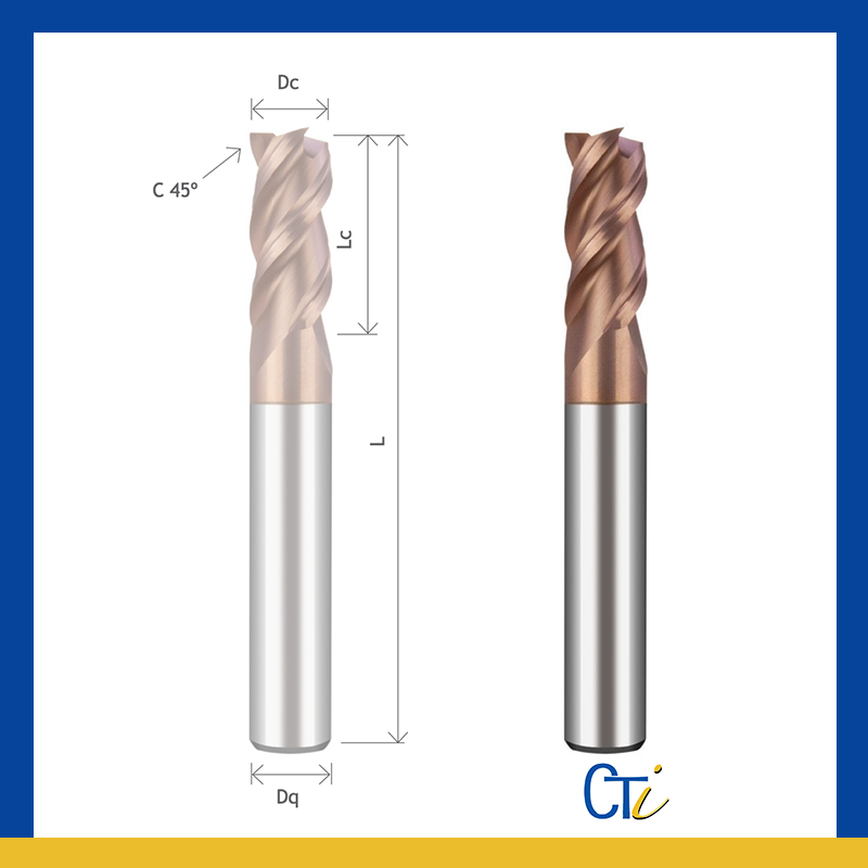Z5 HELIX : FRAISE CYLINDRIQUE DV 43º/45º Chanfrein <55HRC