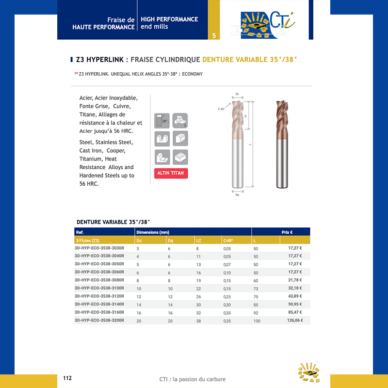 Z4 HYPERLINK : FRAISE CYLINDRIQUE DV 35º/38º