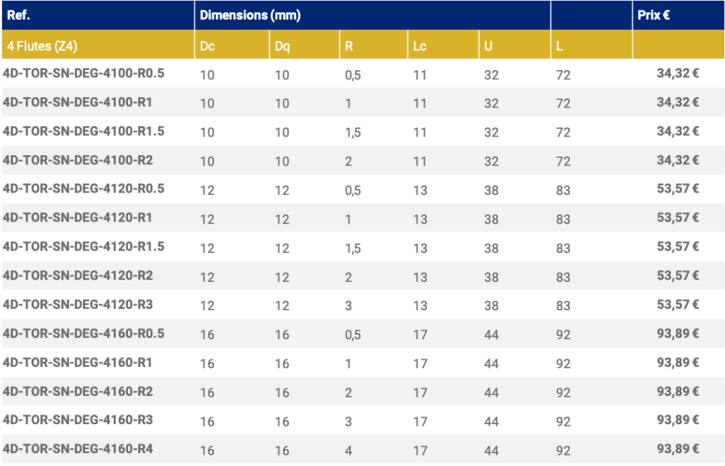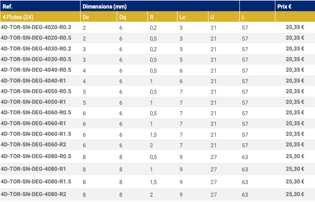 Z4 FRAISE TORIQUE – Serie Normale