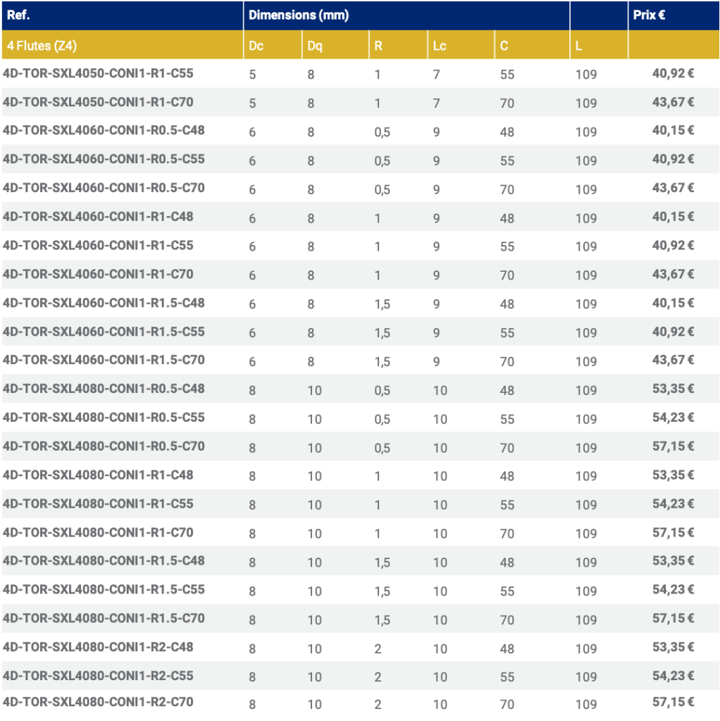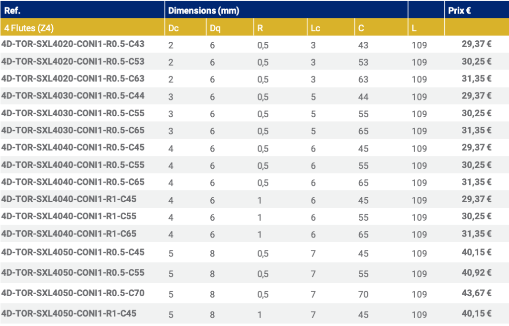 Z2 FRAISE TORIQUE 62 HRC – Série Longue