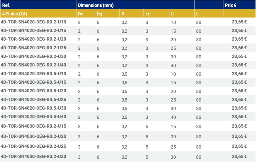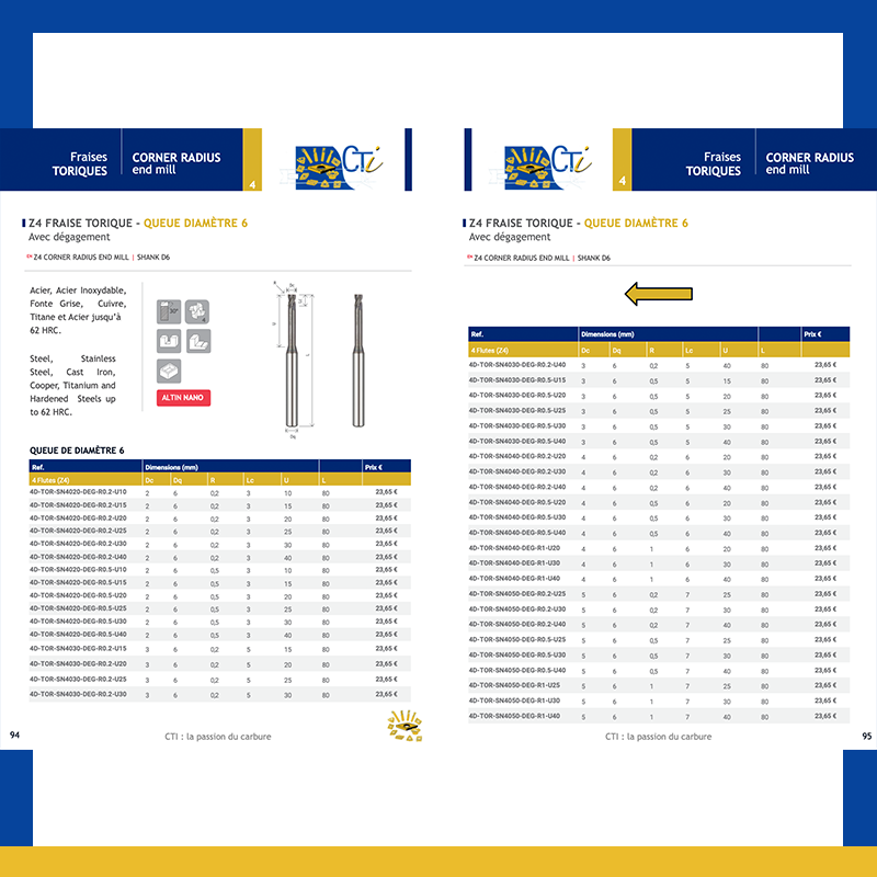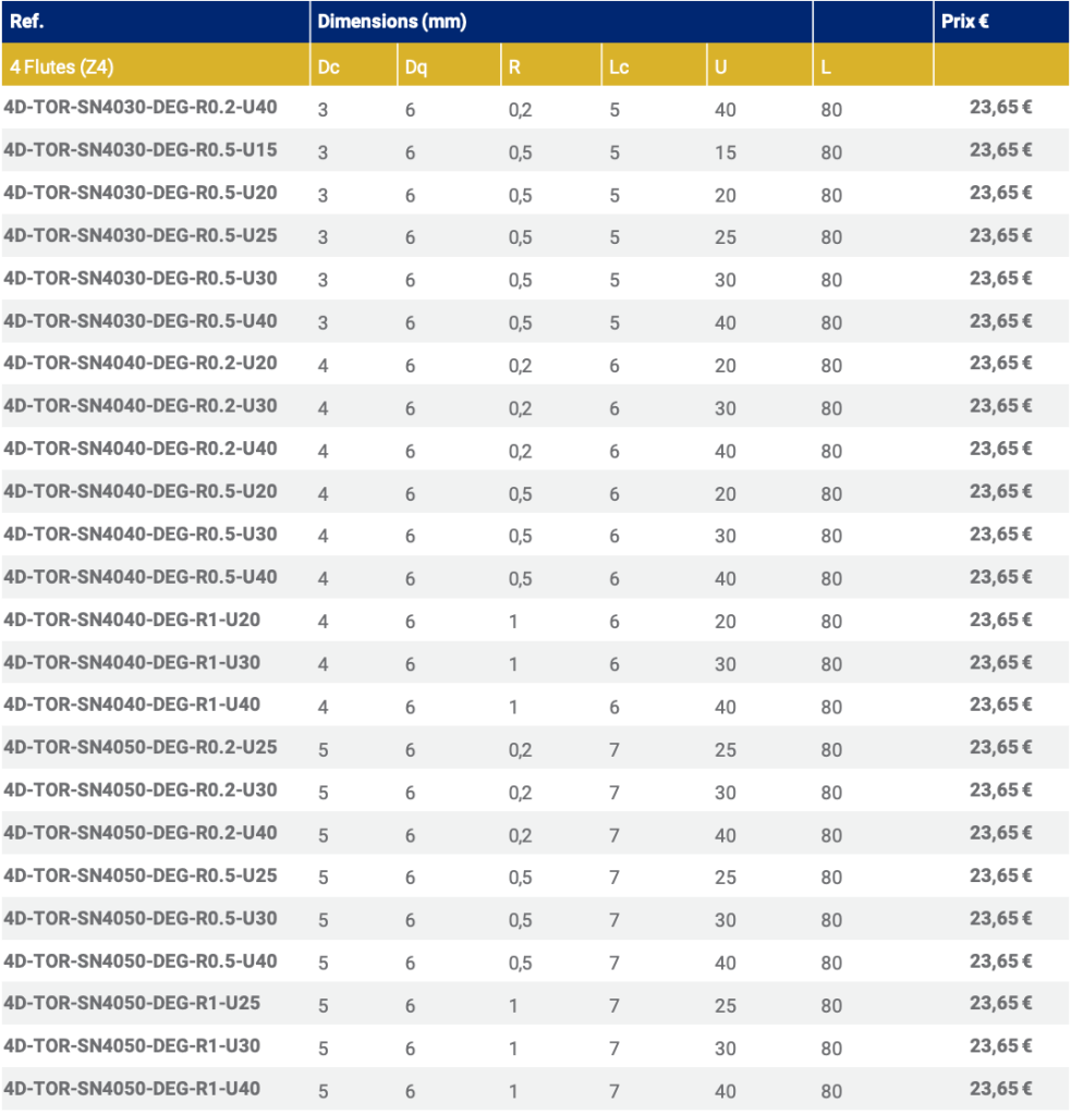 Z4 FRAISE TORIQUE 62 HRC – Série Normale