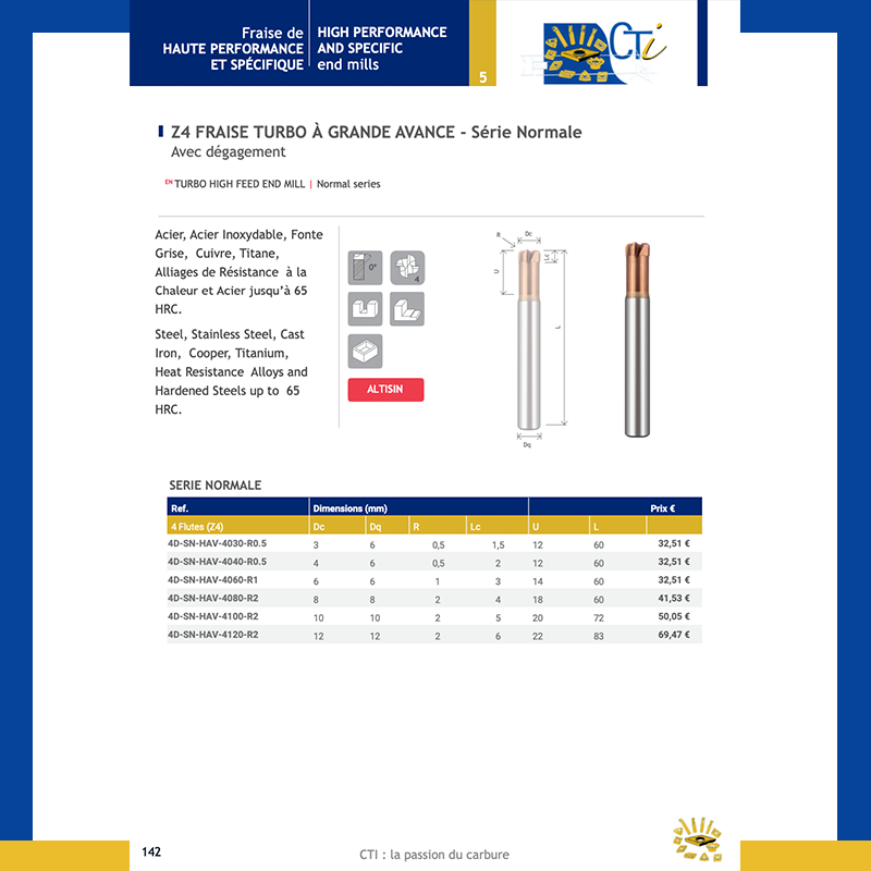 Z4 FRAISE TURBO À GRANDE AVANCE – Série Longue