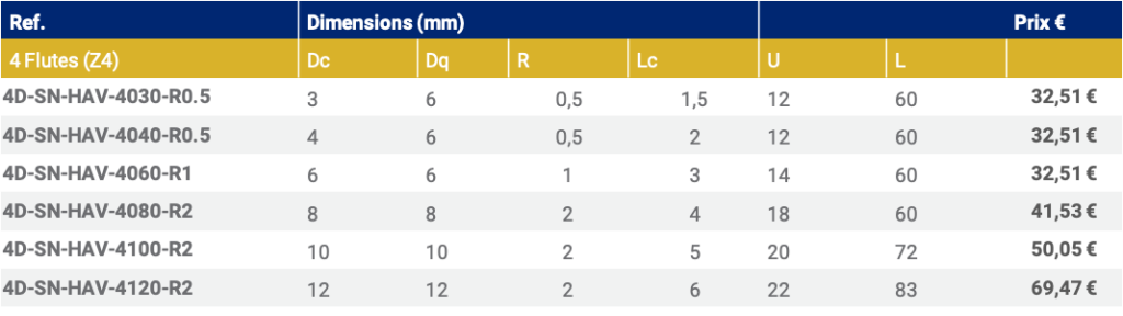 Z5 HELIX : FRAISE CYLINDRIQUE DV 43º/45º – avec rayon <65HRC