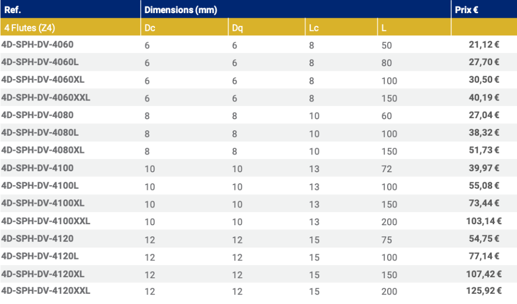 Z4 HYRUX : FRAISE CYLINDRIQUE DV 43º/45º – Haute Performance