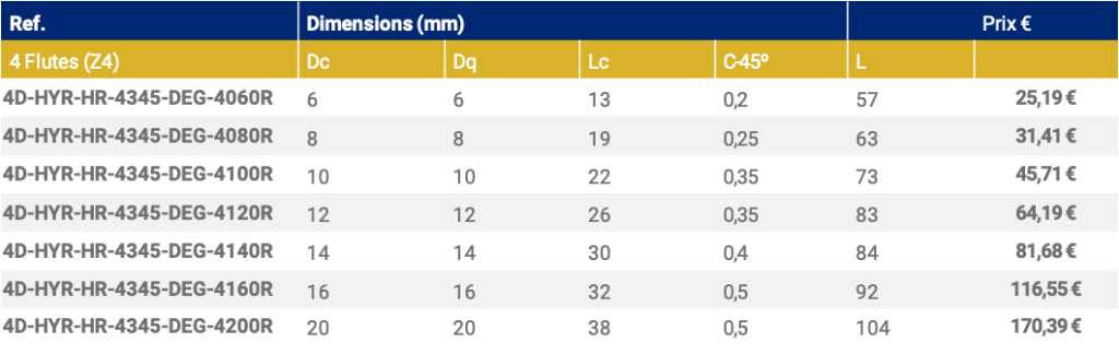 Z4 HYRUX FRAISE CYLINDRIQUE DV 43º/45º – W Haute Performance