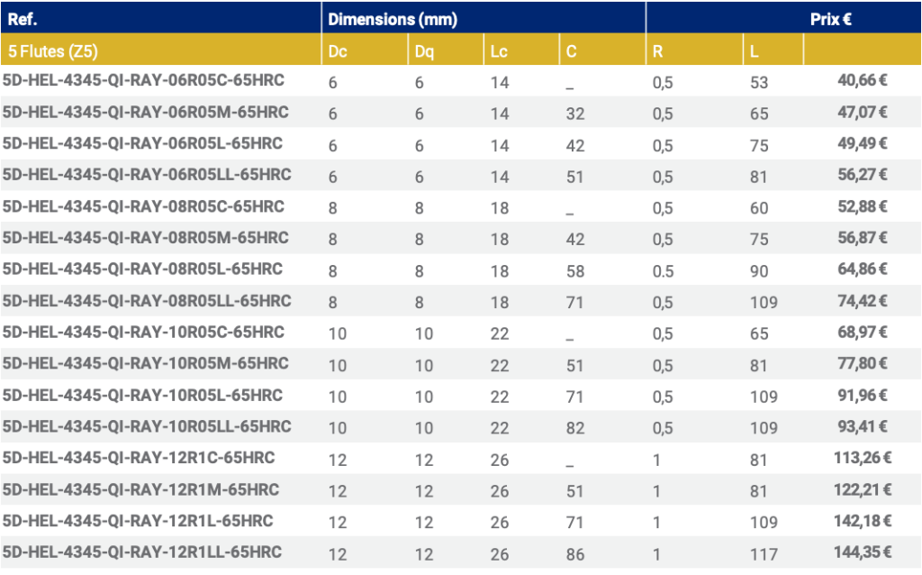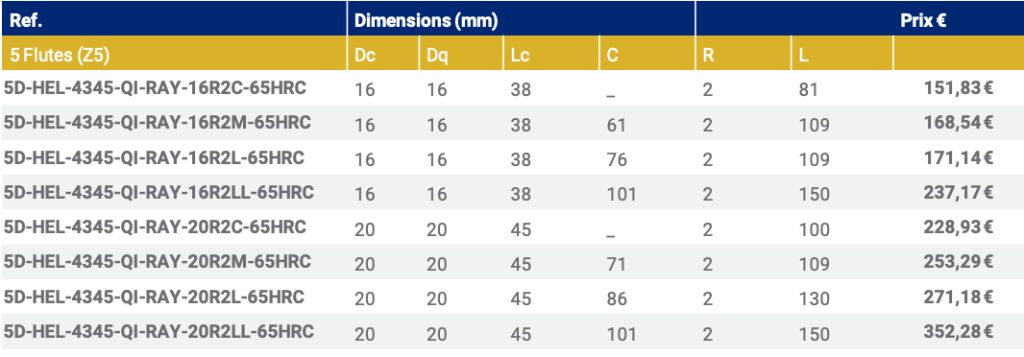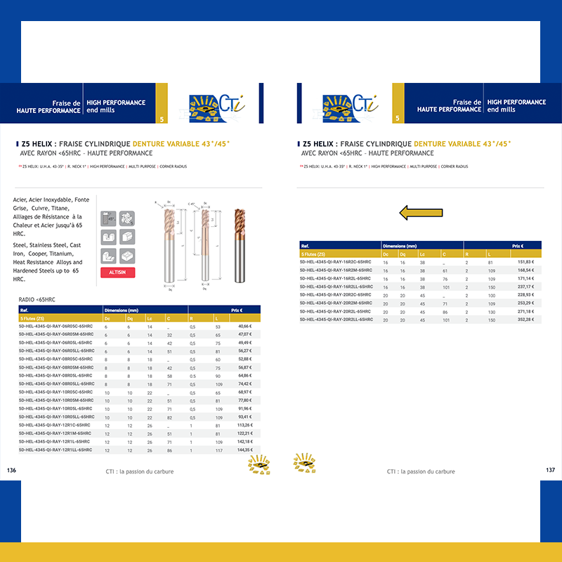 Z5 HELIX : FRAISE CYLINDRIQUE DV 43º/45º Radio <55HRC - Trou d'huile